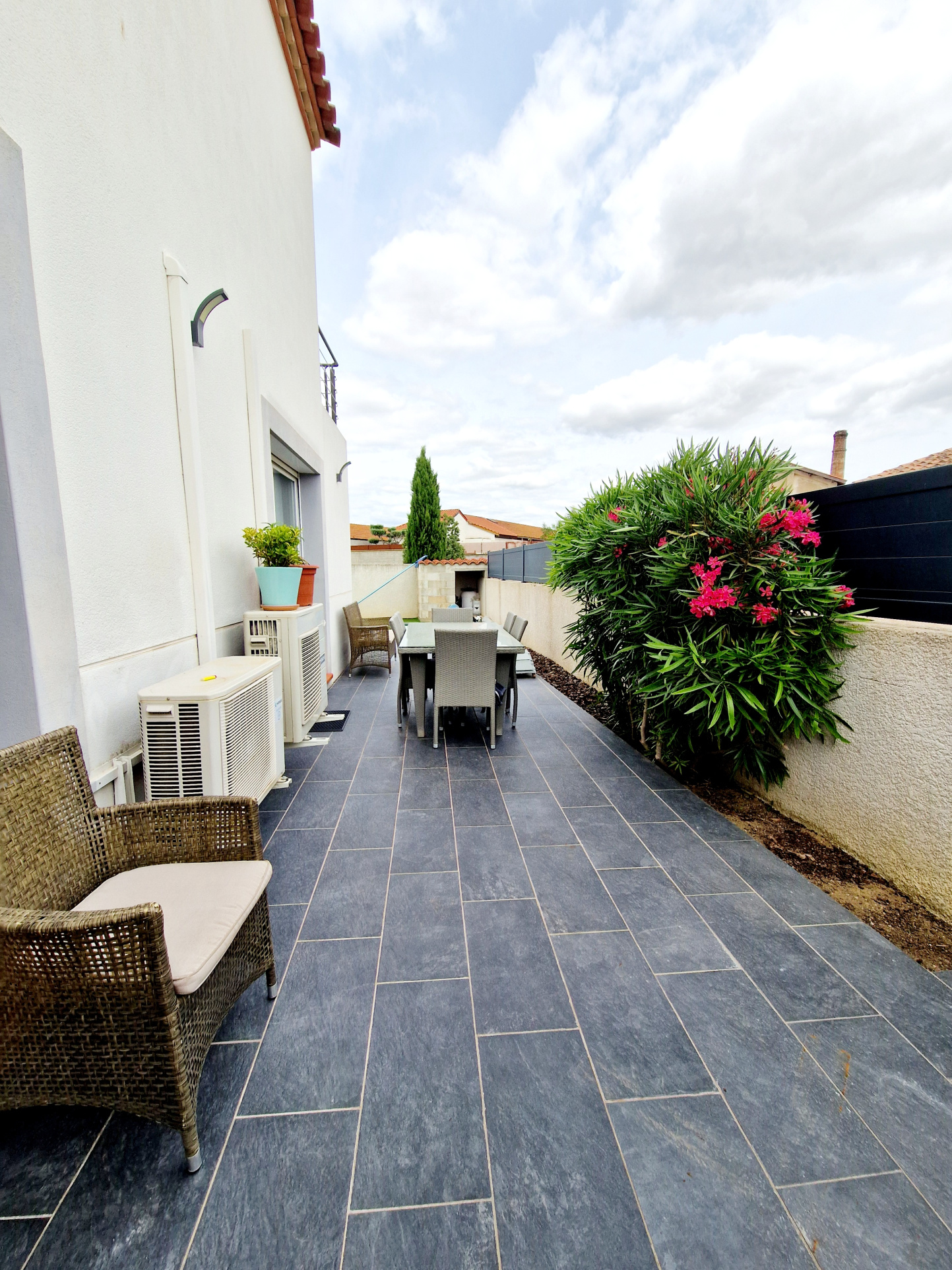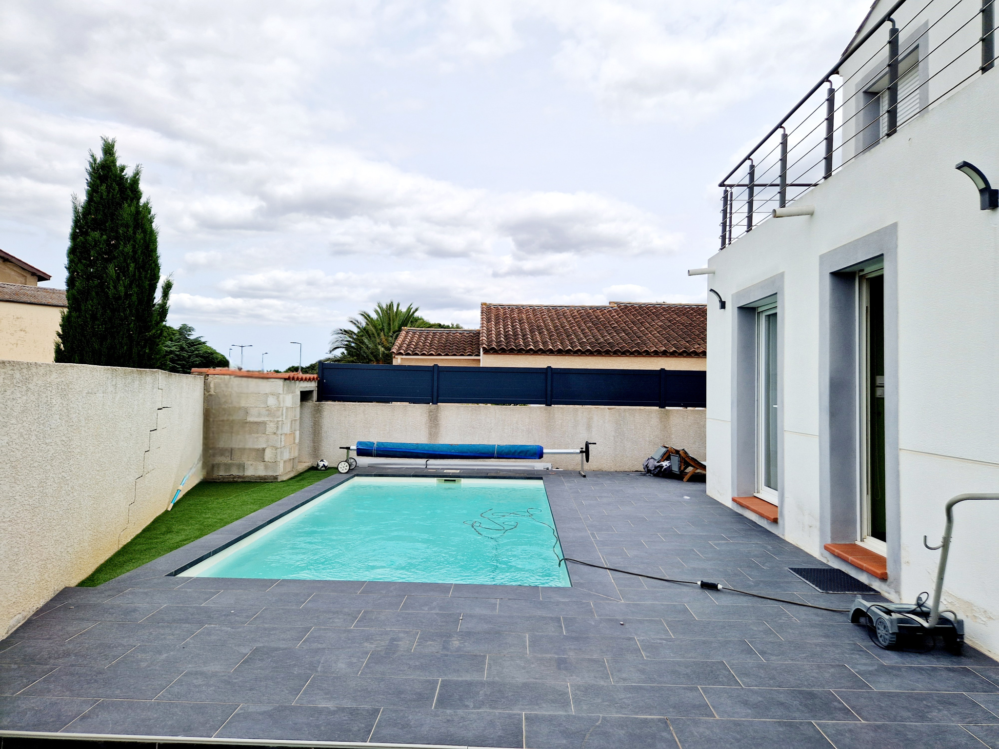 -L'office de l'immobilier vous propose cette charmante Villa de type T4 avec un garage et piscine dans un enrironnement calme et agréable avec tous les commerces à proximité. Cette jolie villa trés lumineuse sur 3 faces R+1 , situé dans un lotissement calme et agéable vous offre une belle surface de vie avec au rdc; une entrée de 9m2 ouvrant la piéce de vie , le séjour et la cuisine aménagée ,une chambre ou bureau avec une salle d'eau cette piéce , un wc indépandant ,un garage de 16.40m2 avec son coin buanderie. A l'étage, un hall desservant les trois chambres avec une salle d'eau avec double vasque. Coté exterieur vous profiterez d'une belle terrasse avec une piscine . Coup de coeur assuré! Aucun travaux à prévoir Les honoraires d'agences sont à la charge du vendeur. contact: Cyril DAVID