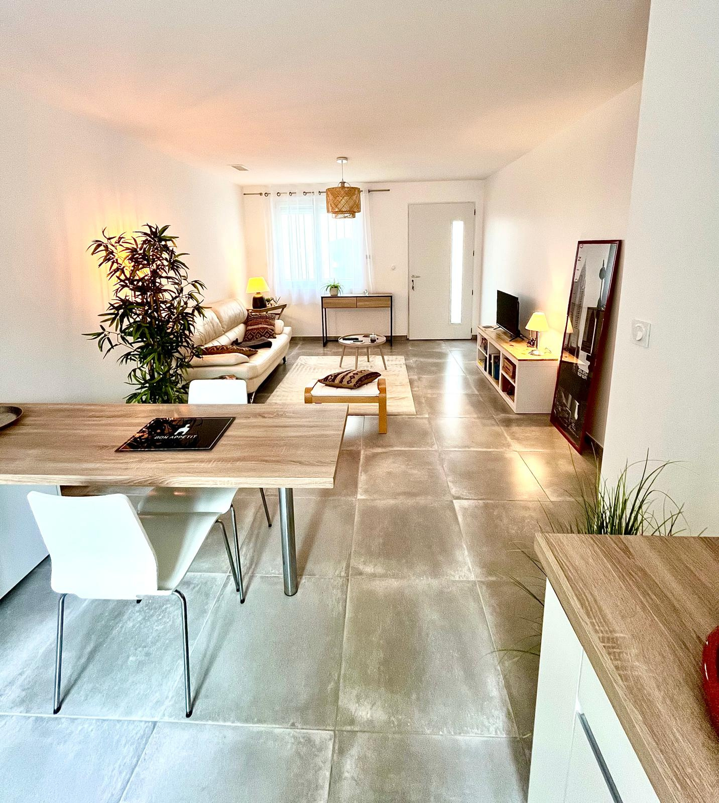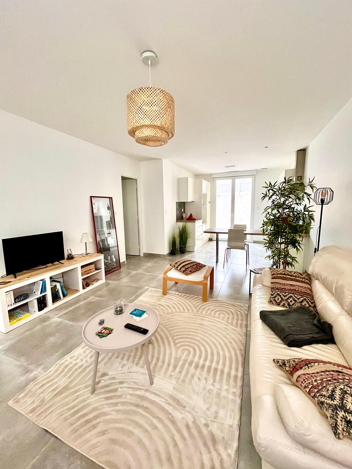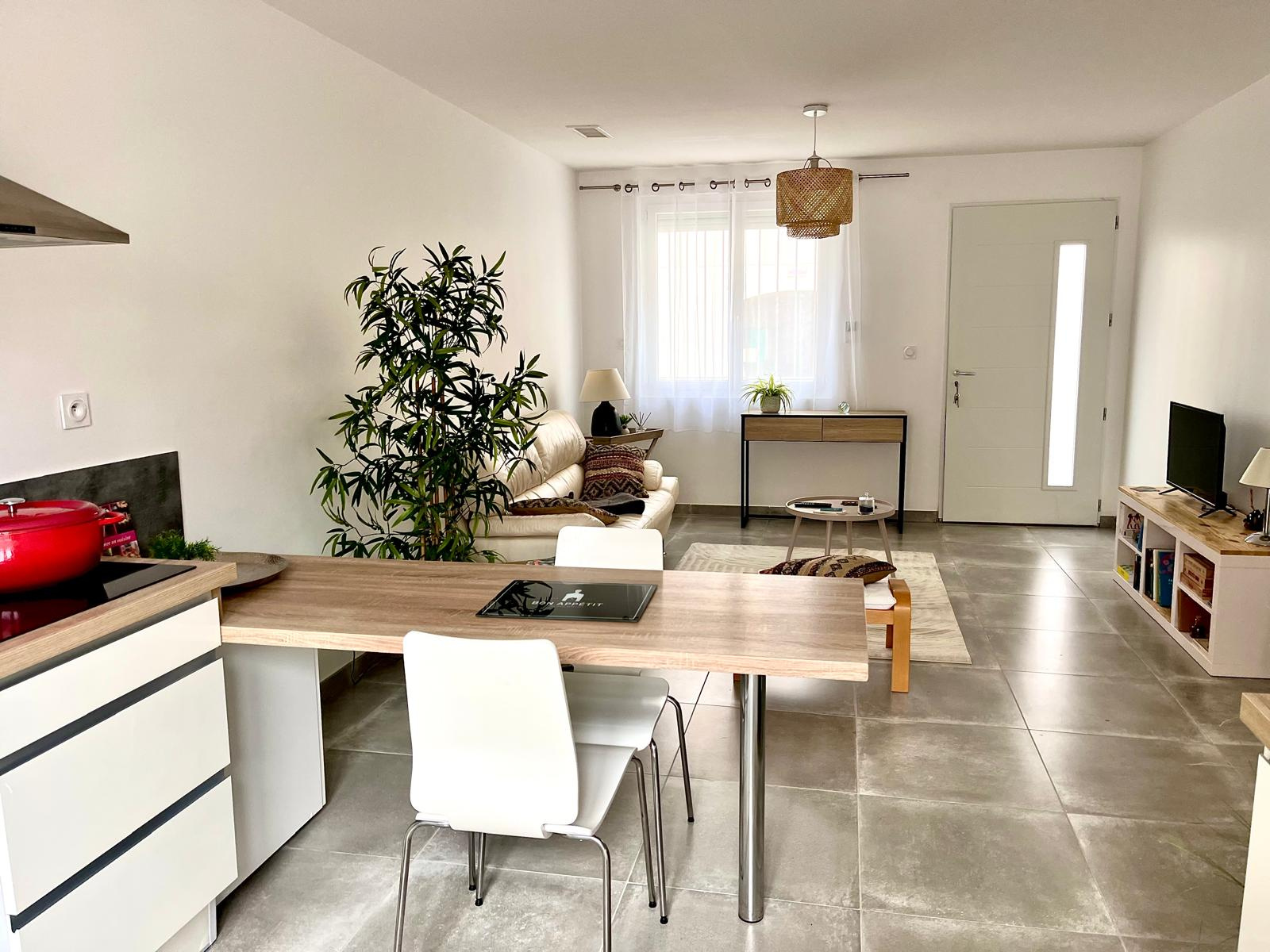 L'office de l'immobilier vous propose cette charmante maison de plain-pied entièrement rénovée, située dans un emplacement exceptionnel en centre-ville. La maison dispose d'une piéce de vie traversante de 26 m² avec un salon et une cuisine ouverte moderne, donnant sur une terrasse bien exposée. Sa terrasse à été repensée par un architecte paysager qui a imaginé un aménagement harmonieux mêlant confort et verdure (des images d'illustration vous permettrons de vous projeter dans cet espace convivial et apaisant) coté nuit un couloir desservant 3 belles chambres avec placards intégrés. Salle d’eau contemporaine avec WC séparé. Espaces pratiques : Garage/ cellier. Prestations haut de gamme : Climatisation gainable réversible pour un confort optimal toute l'année. Menuiseries en double vitrage garantissant une excellente isolation. Atout majeur : Un emplacement premium, idéal pour profiter des commodités du centre-ville à pied, tout en vivant dans un cadre calme et confortable. Cette maison est proposée par L’Office de l’Immobilier, situé au 14 Quai Vallières à Narbonne. Contactez Cyril et Camille David pour organiser une visite au 07 71 86 17 71. Ne laissez pas passer cette opportunité rare !